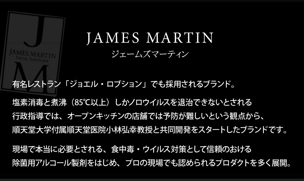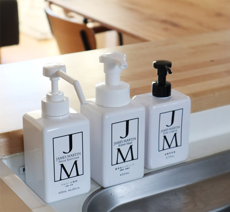 JAMES MARTINのハンドソープは、プロの料理人やレストランのキッチンでも使っていただけるように、無香料です。洗浄後に手に香りが残らないため、食材や食器へのニオイ移りを防ぎます。