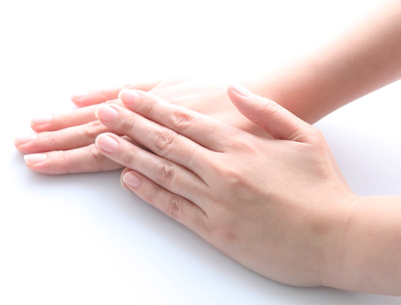手を洗うと、皮膚膜が剥がれ、水分が蒸発し、肌が乾燥します。手洗いを繰り返すと、回復しかけた皮膚膜が除去されてしまうため、水分が奪われ続けます。これにより慢性的な肌荒れを引き起こし、ひび、あかぎれ、かゆみの原因になります。