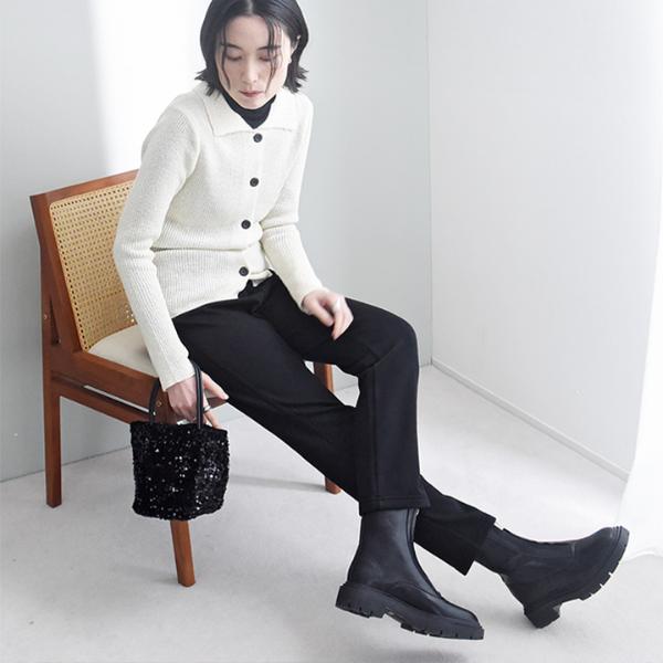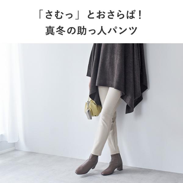 裏ベロアで心地よい暖かさのストレッチパンツ。リッチ感たっぷりな肌触りで、冷えがちな下半身をふんわり優しく包み込みます。寒い冬のおでかけシーンにぴったりな一着。