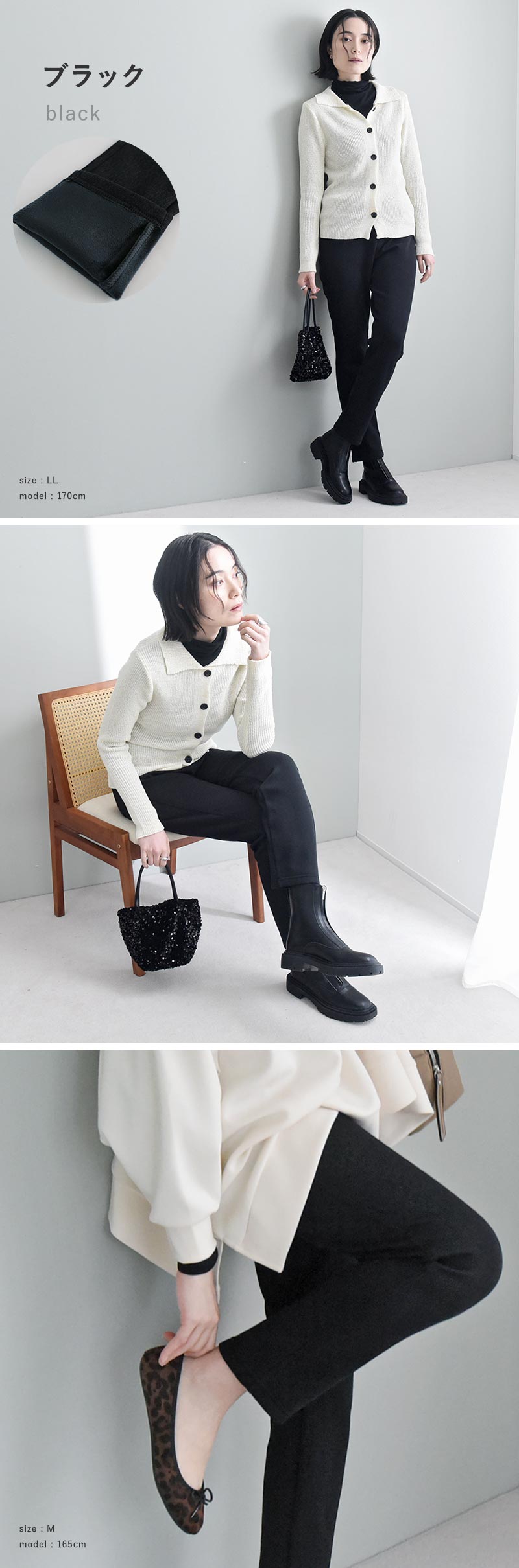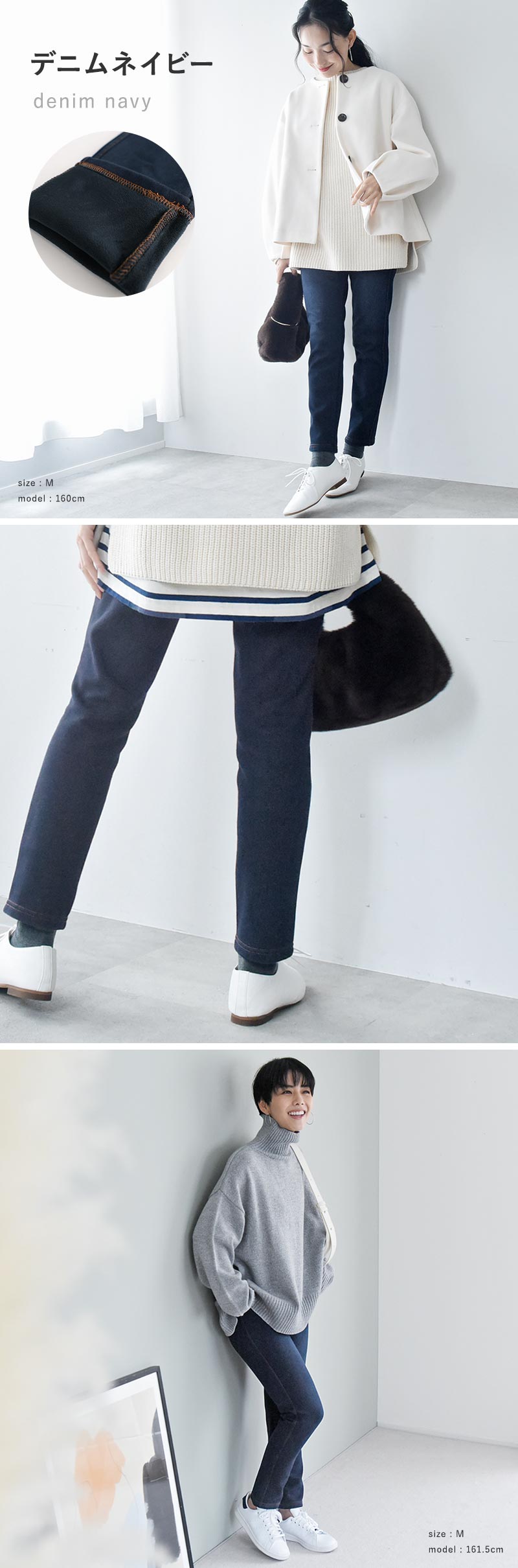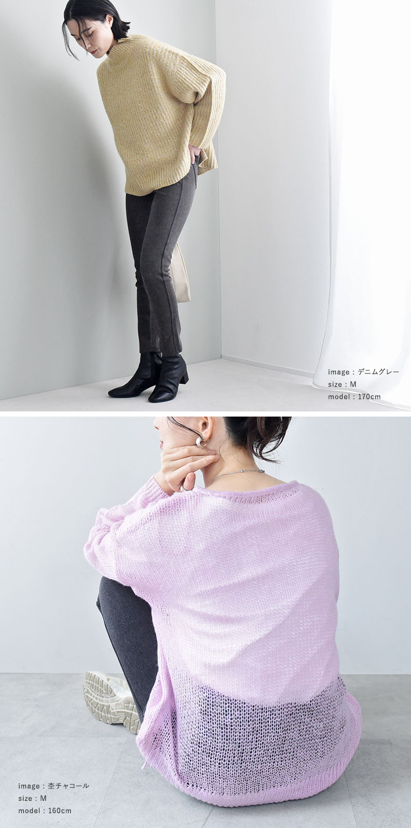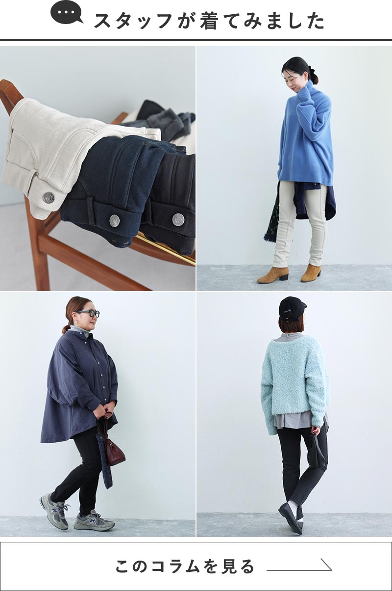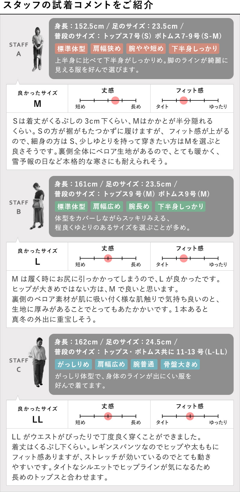 異なる身長のスタッフが着用してみました。サイズ感やコーディネートのご参考にどうぞ。
