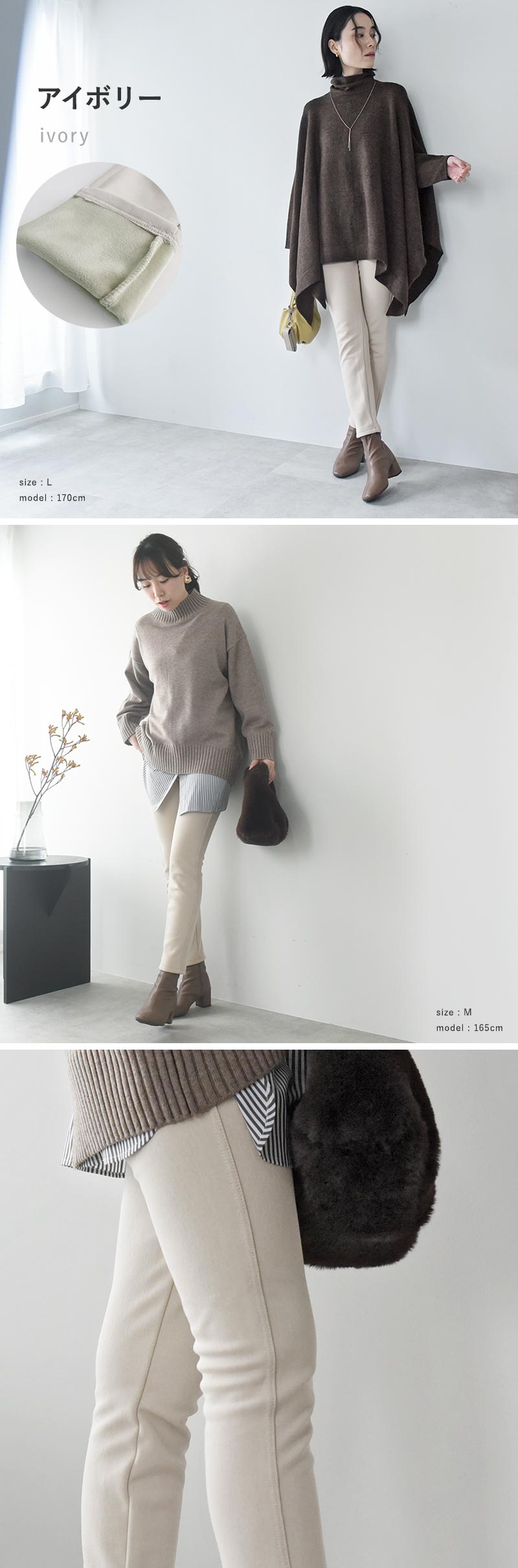 ベージュが混じったようなアイボリー。暗くなりがちな冬の装いをぱっと明るくしてくれます。