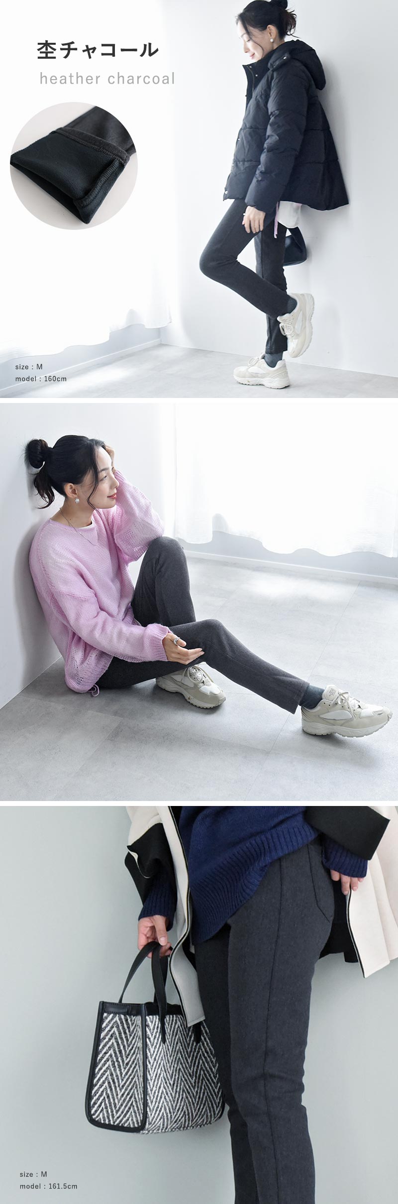 • 158cmでSでピッタリ。あたたかいし、ウエストゴムのピッタリ感もよいです。色違い検討してます。