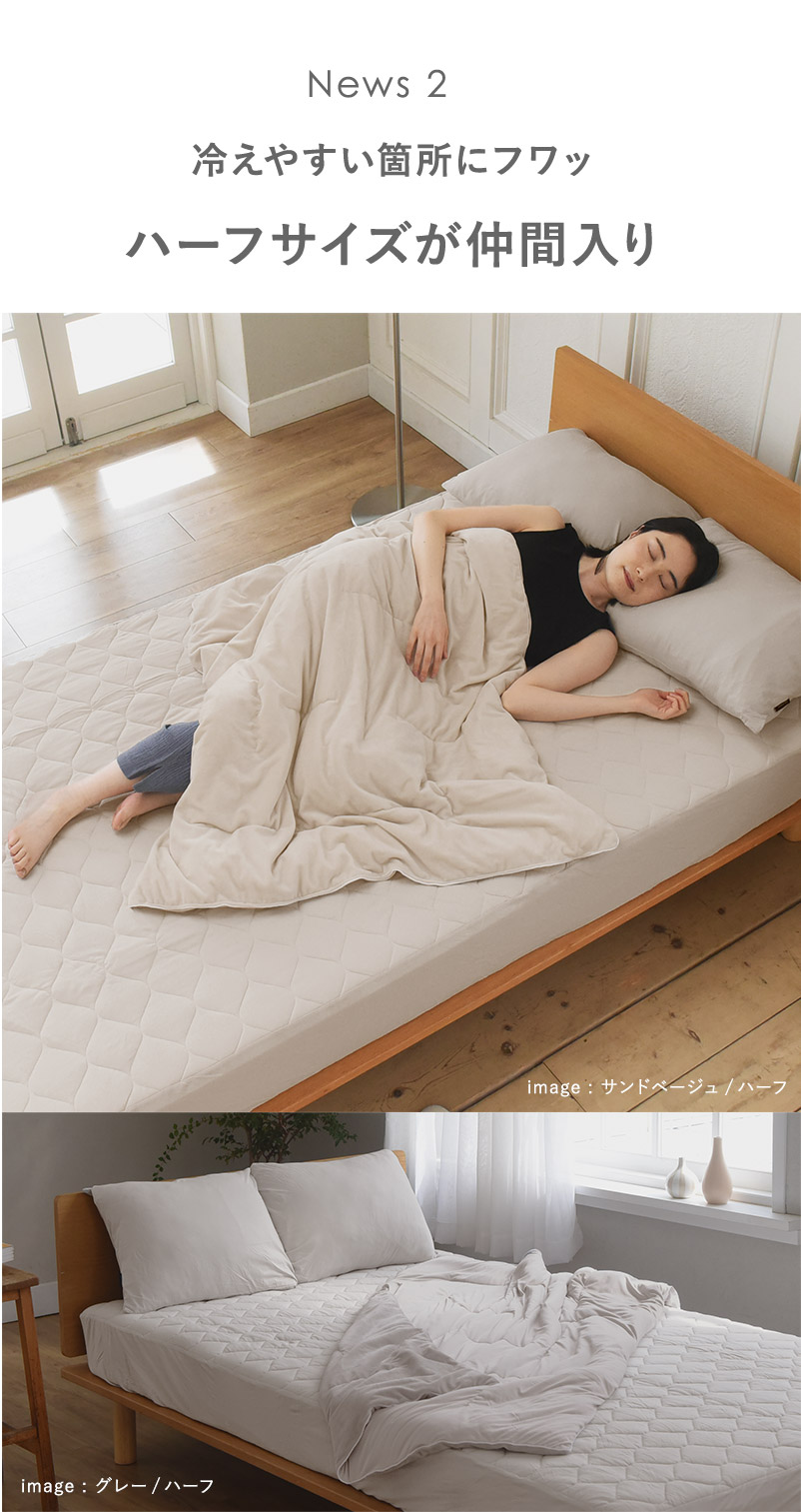 リバーシブルタイプには、シングルサイズの半分(140×100cm)のハーフサイズが登場。お腹まわりなど冷えやすいところにフワっと掛けられます。