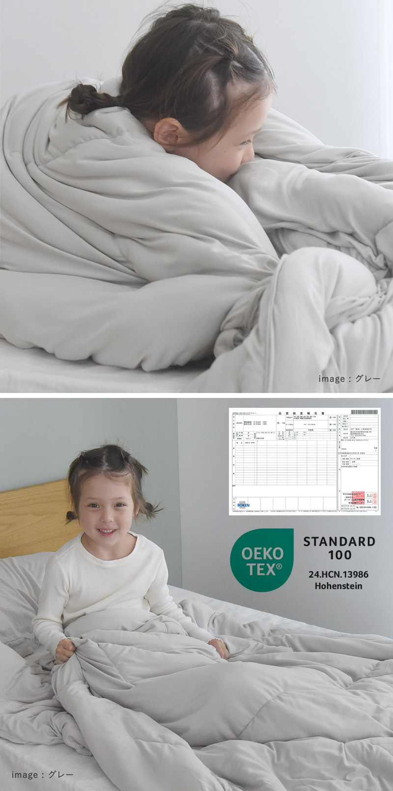 国際的な安全基準エコテックス®スタンダード100で、規格の中でも最も厳しい「製品分類1」の基準をクリア。