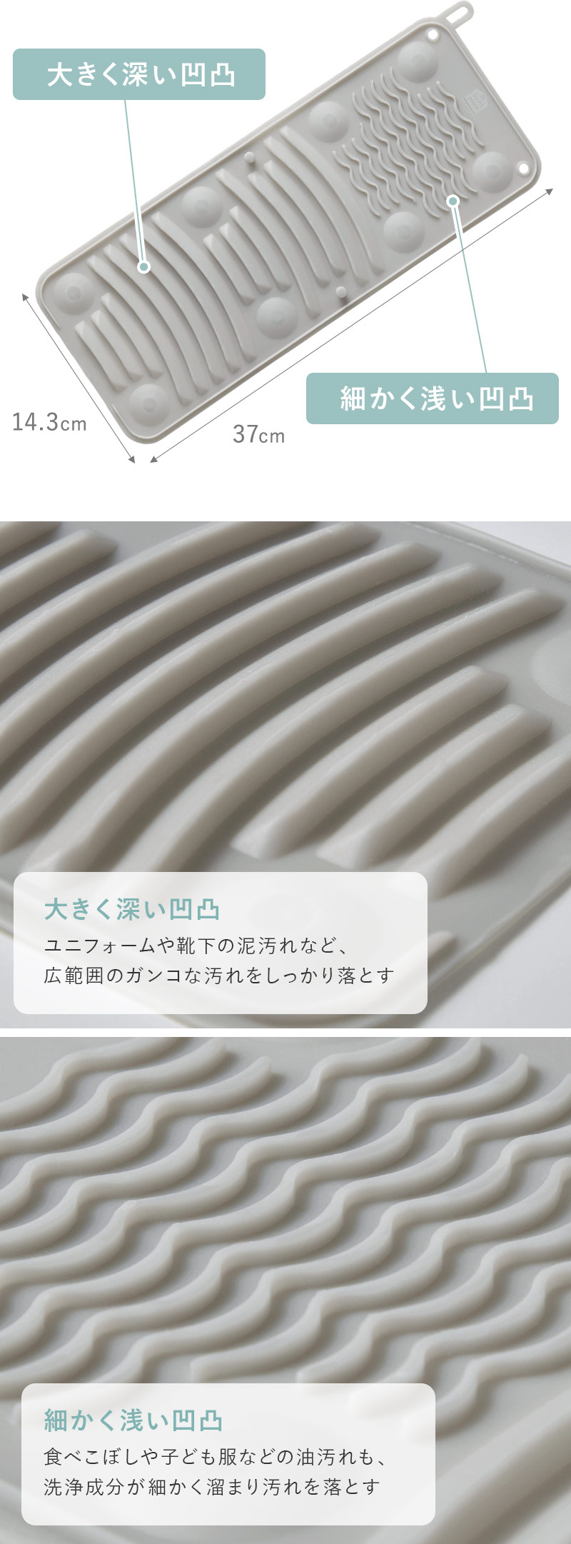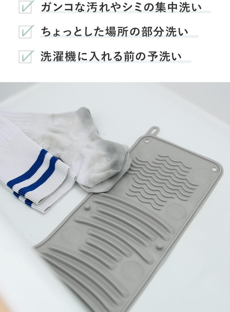 こちらの洗濯板はソフトな素材+吸盤付きで、洗いやすさも実現。