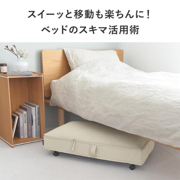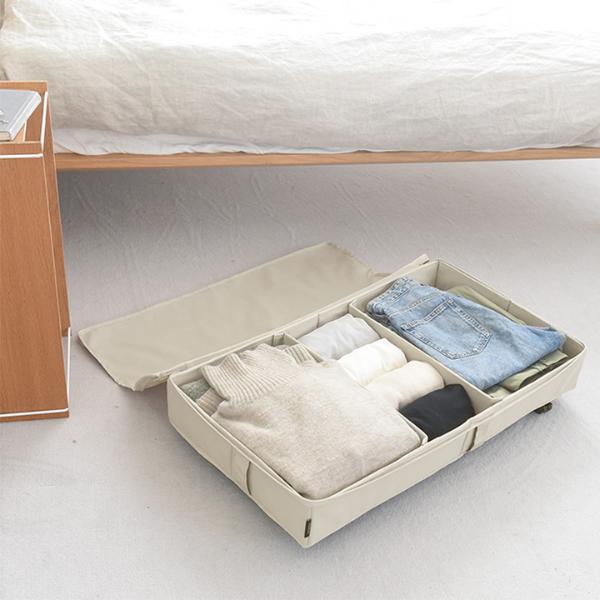 ベッド下の隙間に入れられるキャスター付きの収納ケース。360度回転するキャスターが付いているので出し入れもスムーズ。デッドスペースを上手に活用できる収納アイテムです。