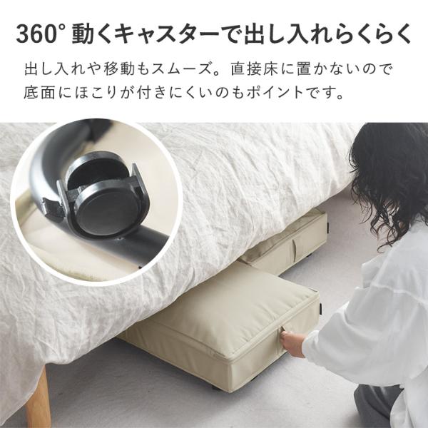 そこで誕生したのが、こちらの「ベッド下収納ケース」。360°動くキャスターつきでスイーッと自由に動かすことができます。これなら出し入れも移動もらくらく、お掃除の手間もかかりません。