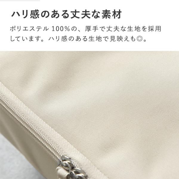 ポリエステル100%の、厚手で丈夫な生地を採用しています。ハリ感のある生地で見映えも◎。