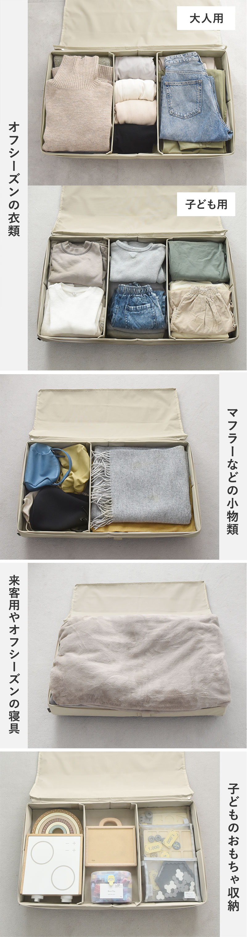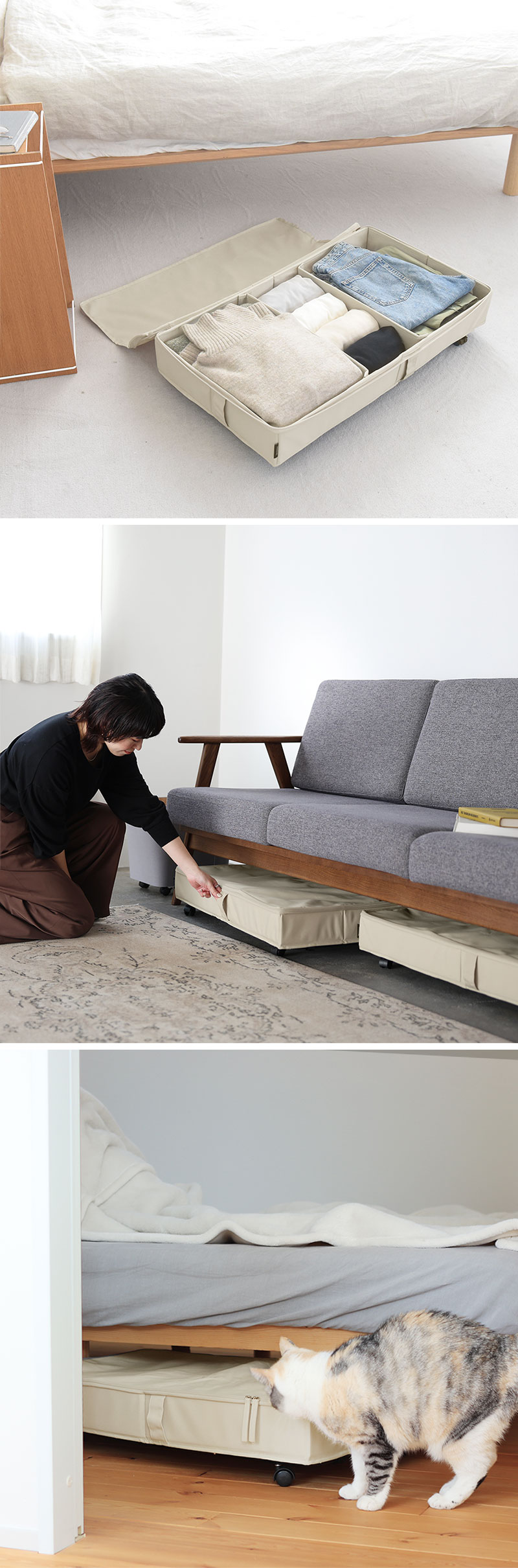 ベッド下を無駄なく使う収納ケース