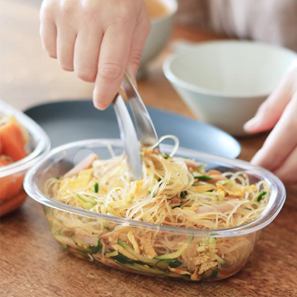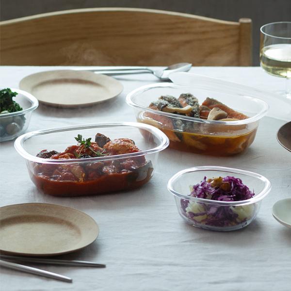 余ったおかずや作り置きの保存に便利な蓋付き容器。一見ガラスのような透明感ですが、実はこちらはTPX樹脂製。本体も蓋もレンチンできて、さらにそのまま食器としても映える、まさに「うつわにもなる保存容器」です。