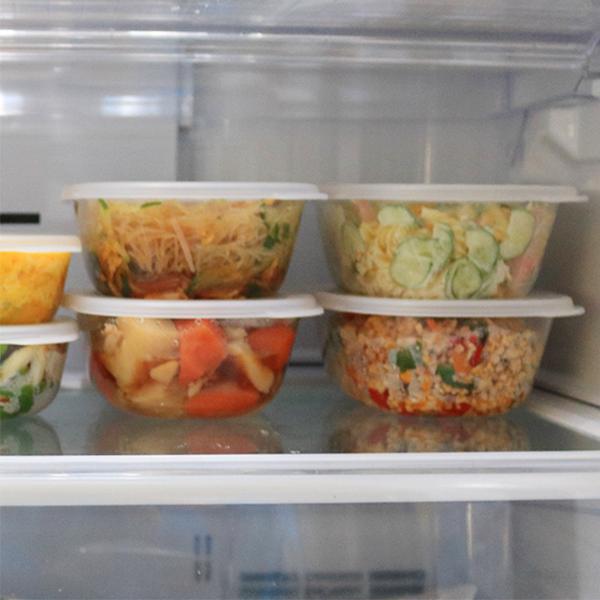 冷蔵庫に保存しているときも、何が入っているのか一目で分かる透明容器。フタもすりガラスのような透け感なので、上からも中身を確認できます。