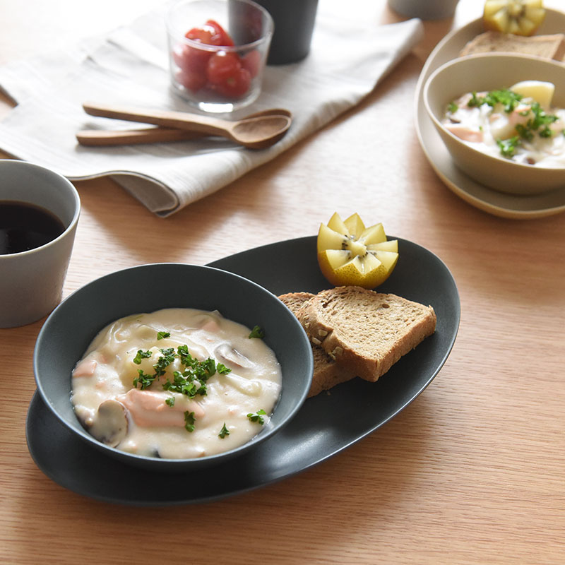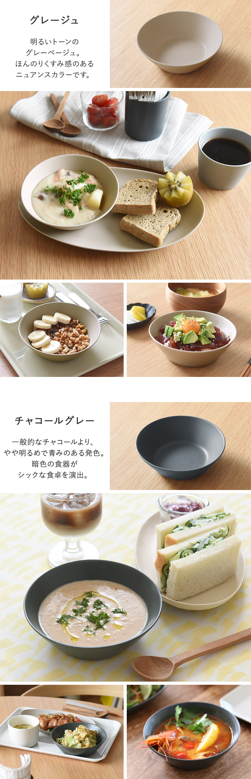 合わせやすいマットなベーシックカラー和洋エスニックと様々な料理に使えて、他の食器との組み合わせもしやすい。そんな色と質感も追求しています。