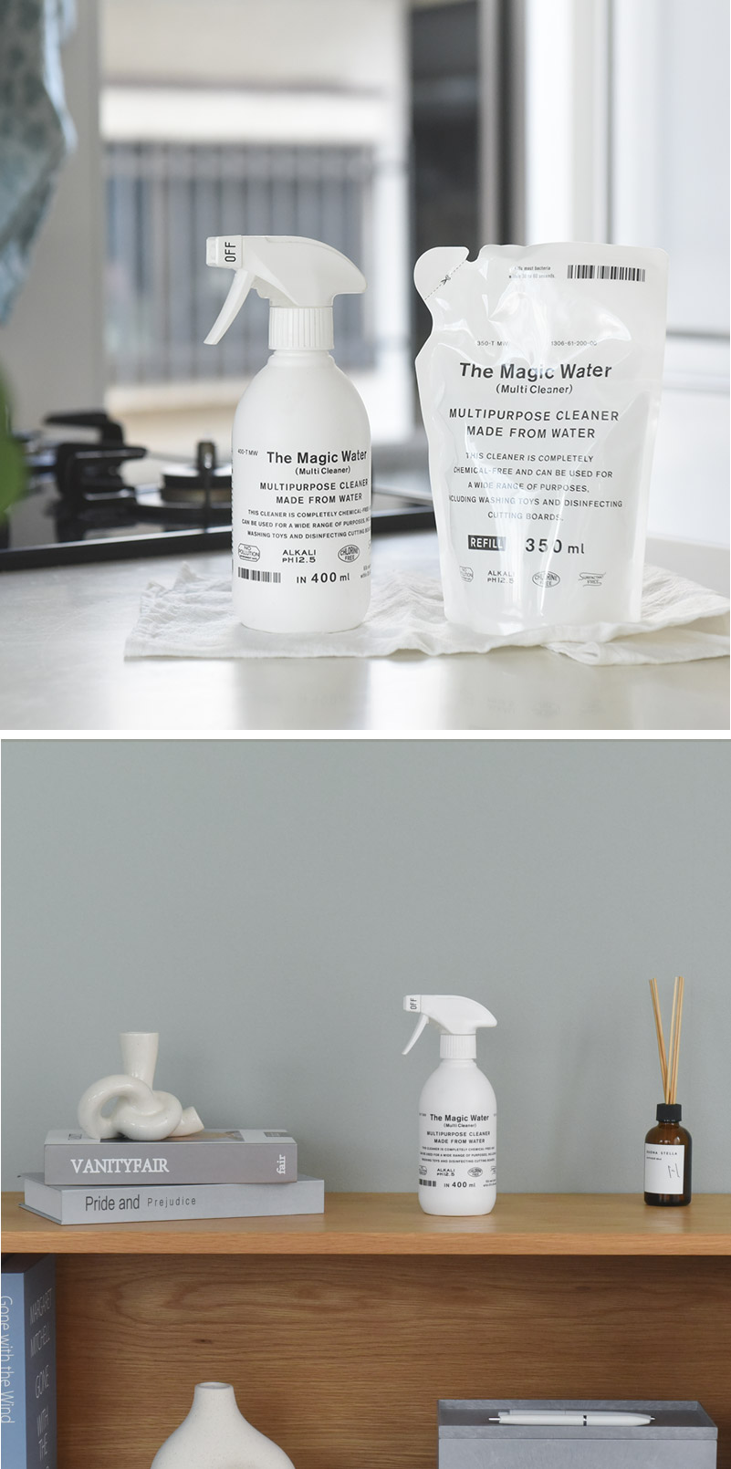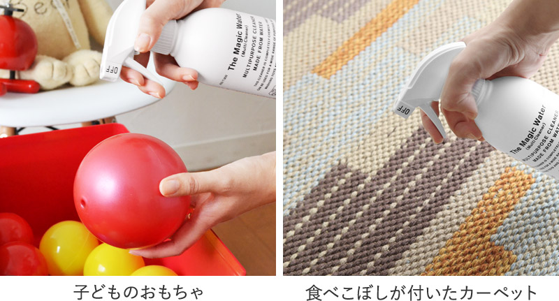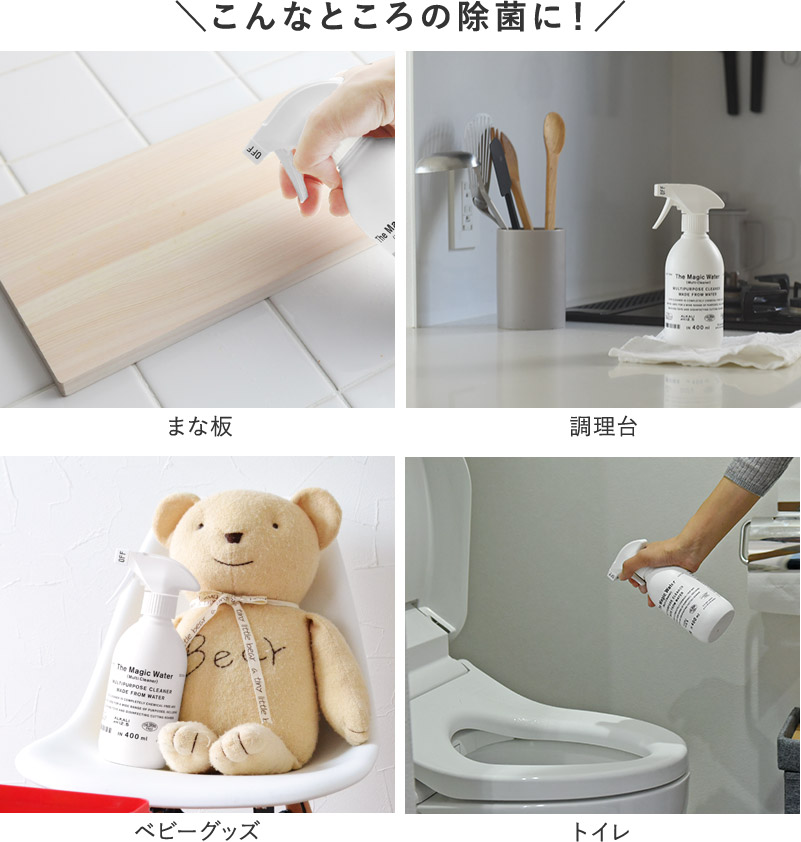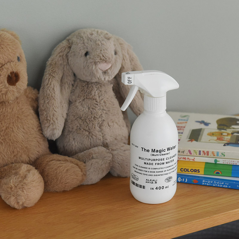 原料は、なんと水だけ。「The Magic Water」は、キッチンのしつこい油汚れやおもちゃの洗浄、トイレ周りの除菌にも効果を発揮する、魔法のようなクリーナーです。