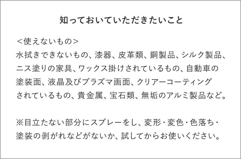 ※除菌する際は本品を直接かけて30~60秒間放置した後、水で洗い流してください。