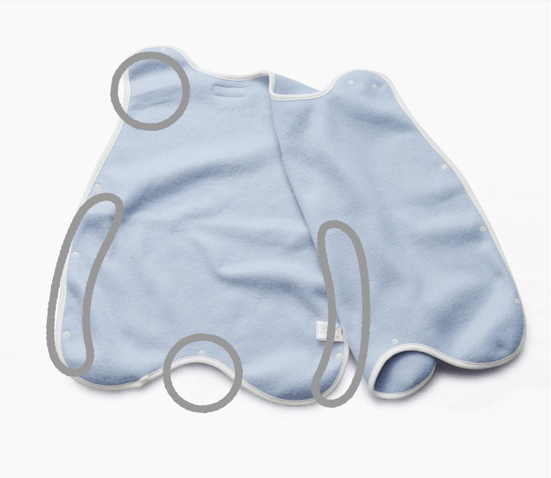 元気な寝相で布団を蹴飛ばしてしまう子どもたちも、朝まで暖かく包んでくれるマイクロファイバーフリースのスリーパー。こちらはつかまり立ちや、よちよち歩きの赤ちゃんにも、サッと頭からかぶせてボタンを留めれば着せられる、横開きタイプのデザインです。
