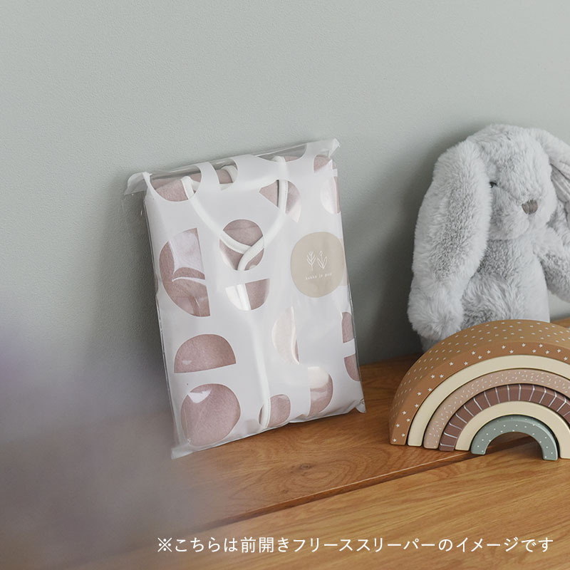 まるい柄の透明部分から、フリーススリーパーがチラ見えするアンジェオリジナルの袋に入れてお届け。