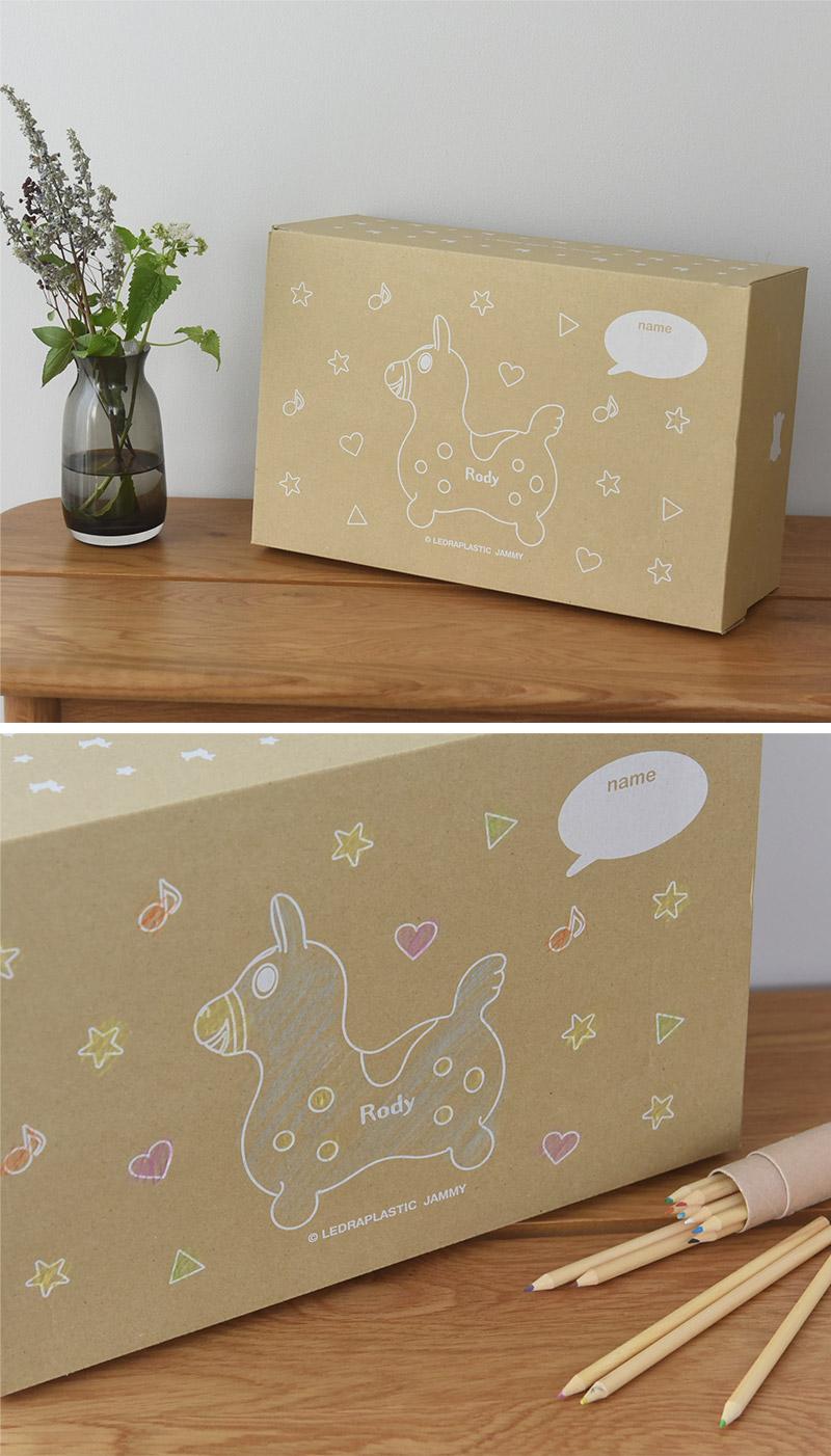 ギフトボックスがリニューアル。「Rody nino nino」のスリーブの中には、ロディのイラスト入りのクラフトボックスが入っています。イラスト部分は色塗りをして楽しむこともできるので、RODYが箱から飛び出した後も、世界でひとつのおもちゃ箱としてお使いいただけます。