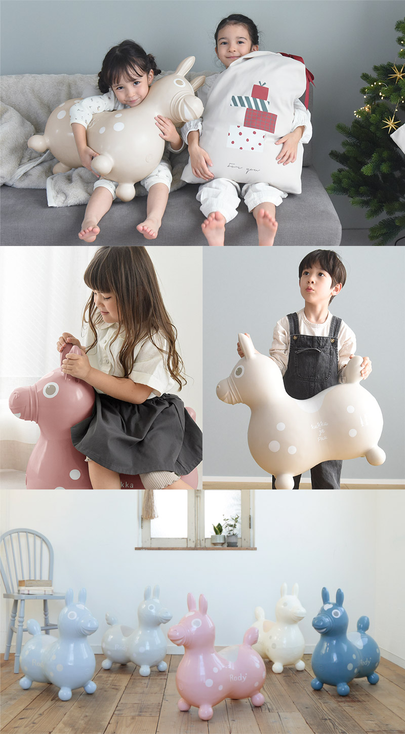 1984年、Rodyはイタリアのバランスボールを作る会社で誕生。馬をモチーフに、徹底的に研究されたフォルムは、子どもが自然とまたがって遊びたくなるようなカタチになっています。