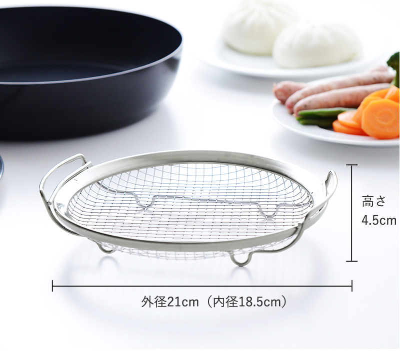 素材は錆びにくく丈夫なステンレス。網と土台部分は取り外せるので洗いやすく、隅々までお手入れできます。