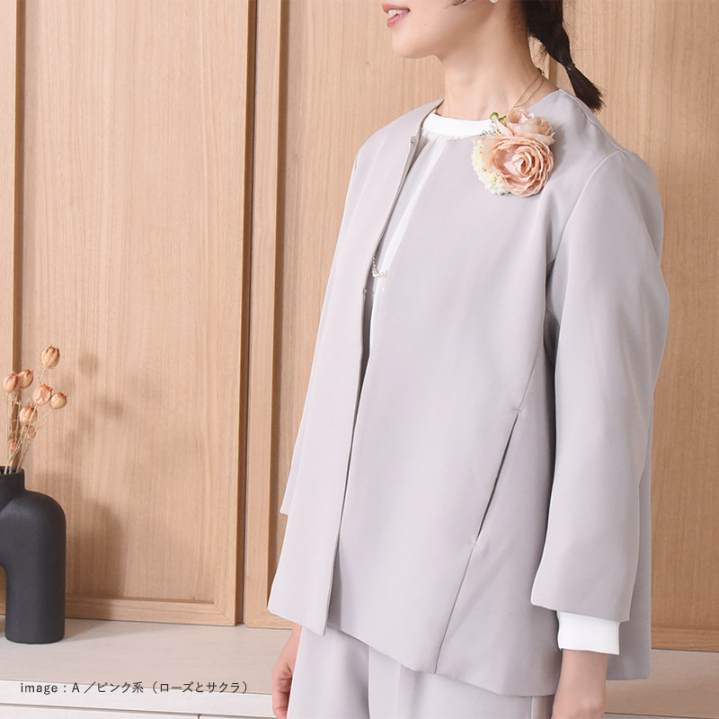 ハレの日の装いの胸元に1点投入するだけでパッと華やぐコサージュ。