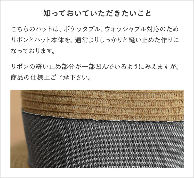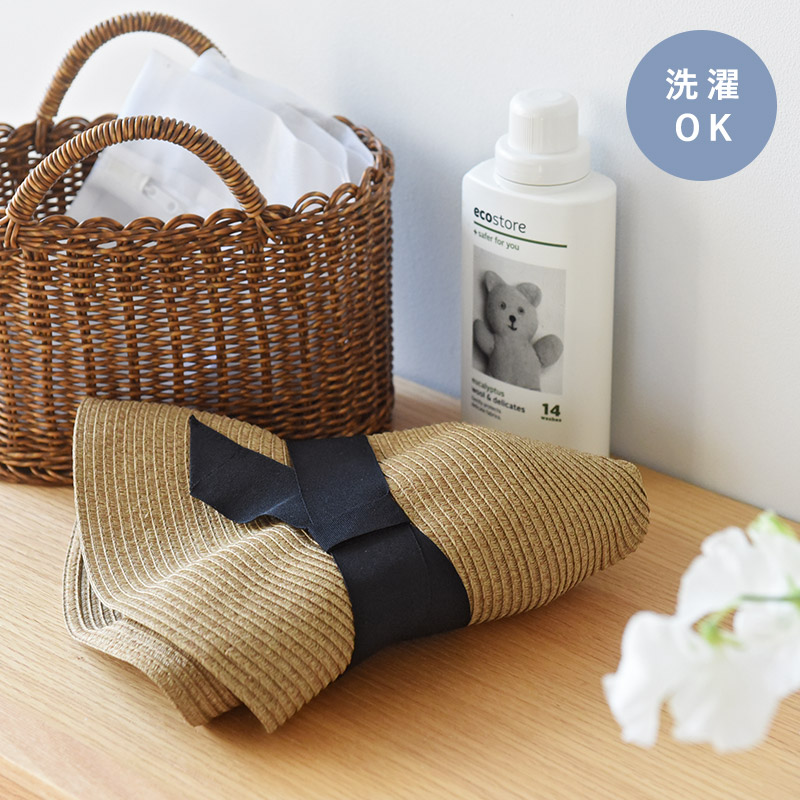 ブレード製法で作られたハットは、まるで天然ラフィアのような見た目ながら、ポリエステル100%の素材なので、洗濯機で丸洗いできるのが嬉しいポイント。