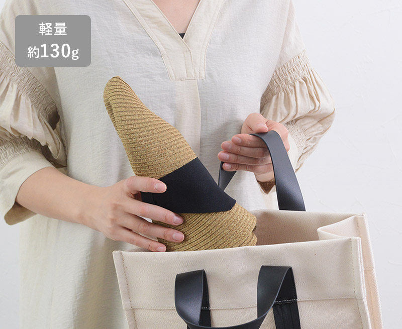 柔らかい形状記憶素材なので、帽子を脱いだら軽く畳んでバッグの中へしまっておけます。