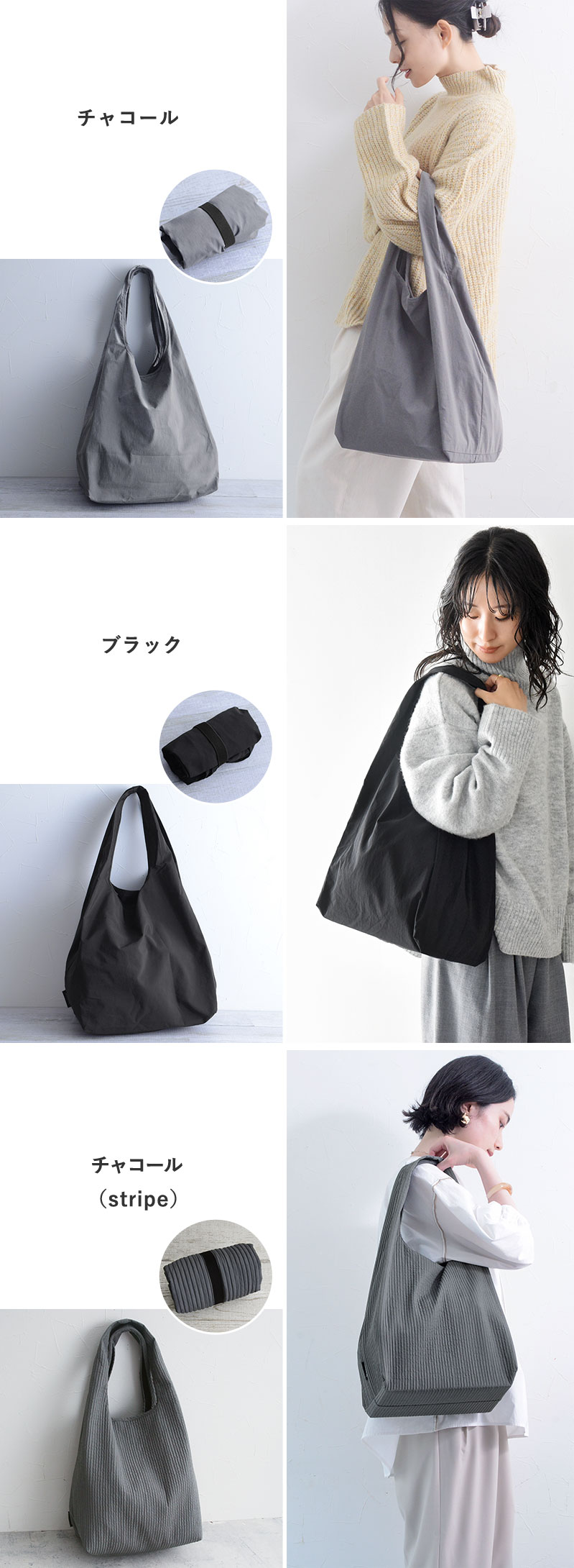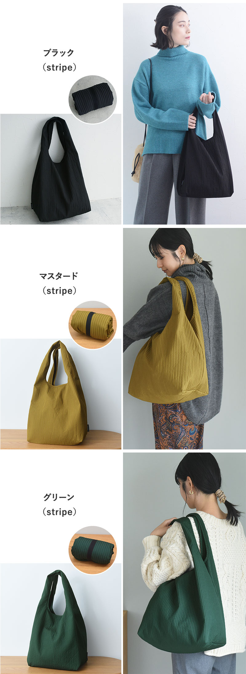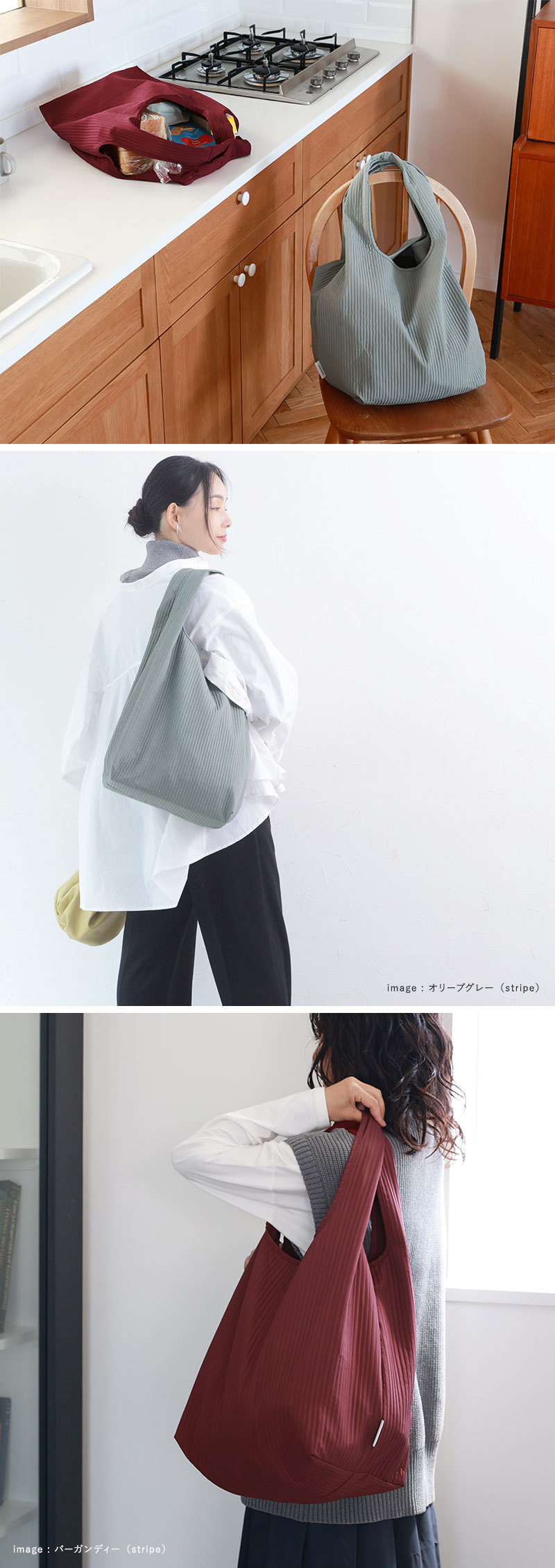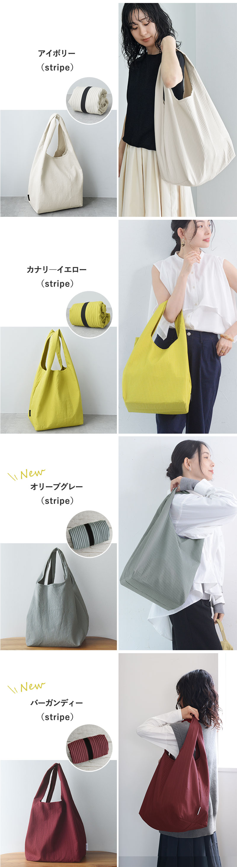 通勤や街歩きのサブバッグとしてもご好評いただいているストライプ調の素材に、秋冬新色の「オリーブグレー」と「バーガンディー」が仲間入りしました。