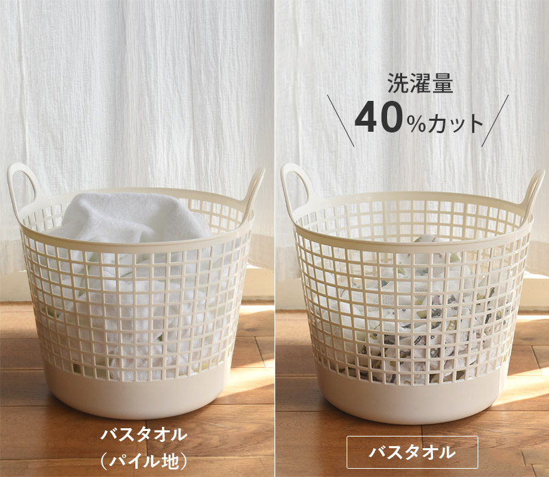 一般的なバスタオルより、ボリュームが少ない分、洗濯量を約40%減らすことができます。