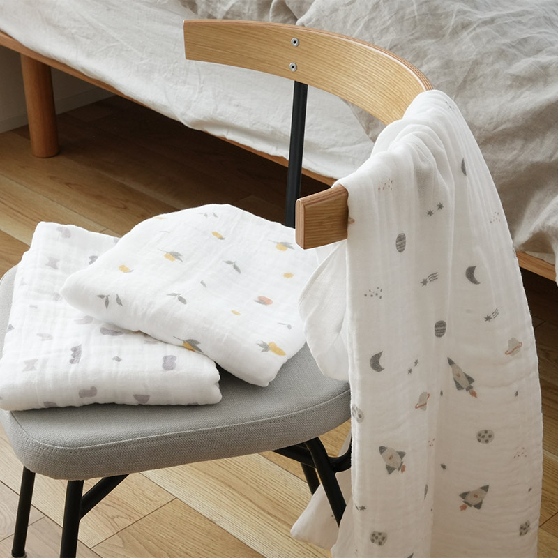 夏のお昼寝ブランケットとしてや、車中でのクーラー対策にも◎。お風呂上がりだけでなく、日常的に手放せない、お子様のお気に入りになってくれます。