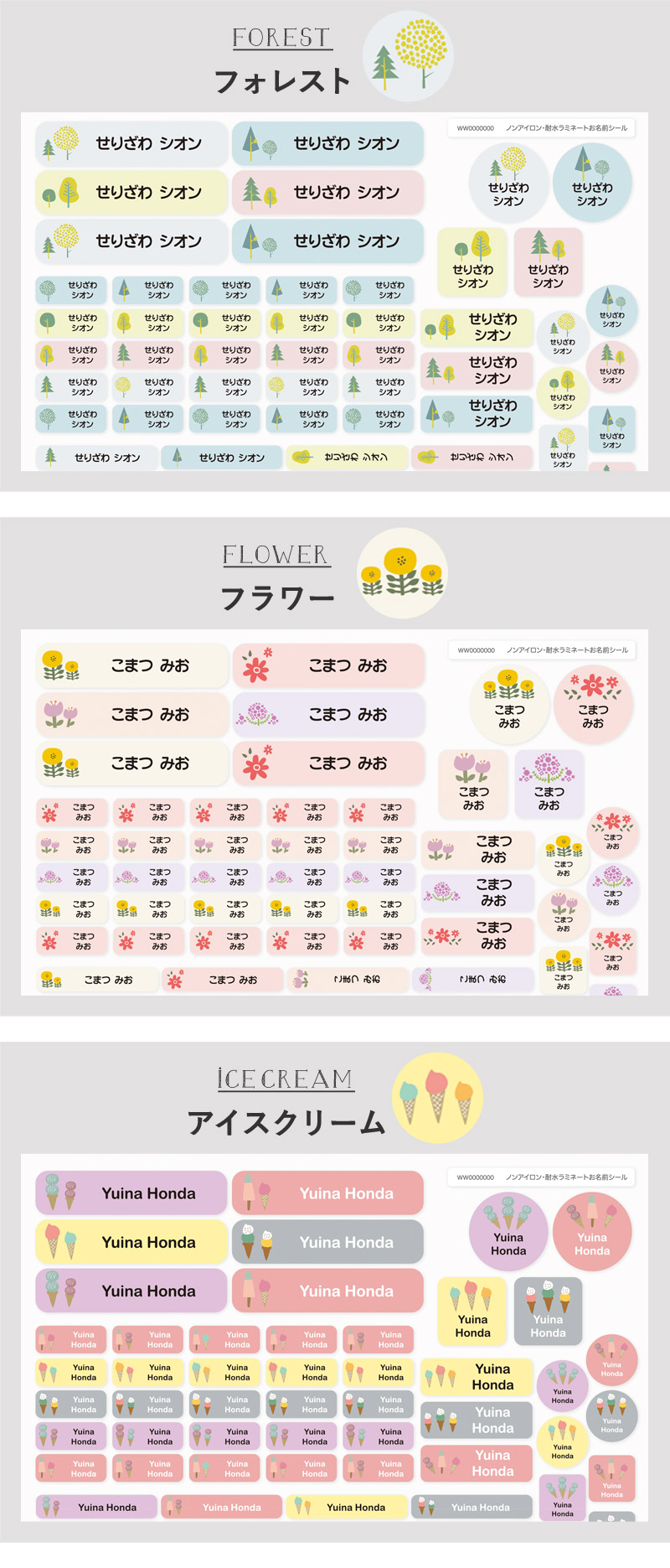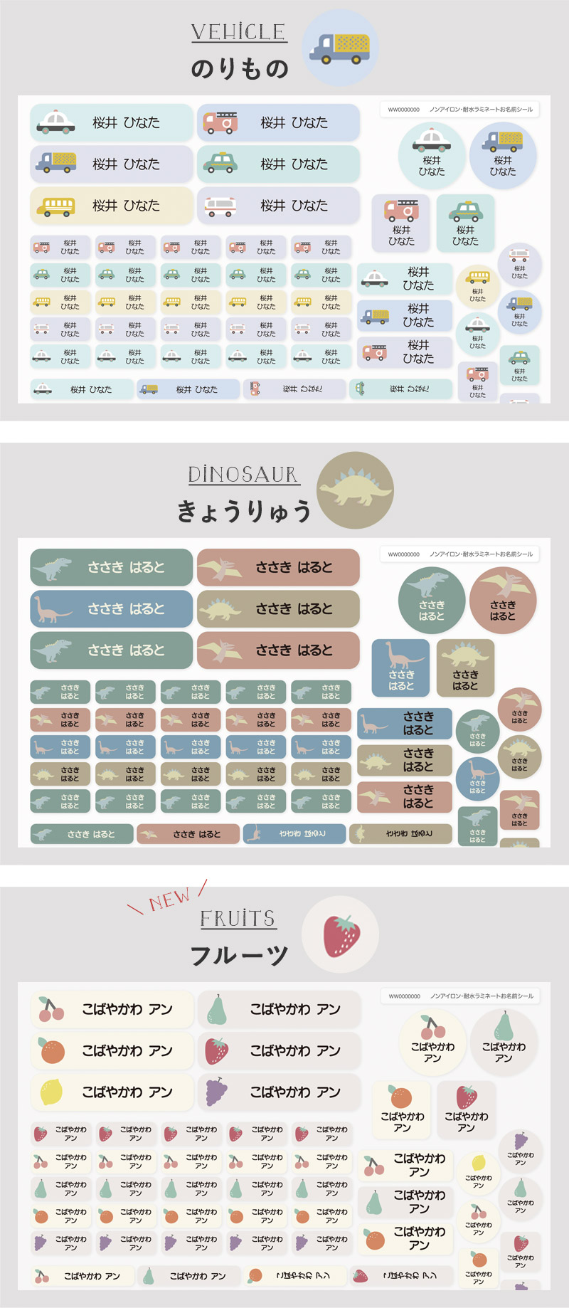 116ピース入りは、大小様々なサイズのシールが揃ったタイプ。既にお子様の名前が印字された状態で届くから、あとは1枚ずつ貼っていけばOKです。