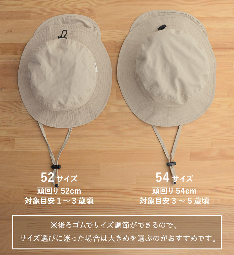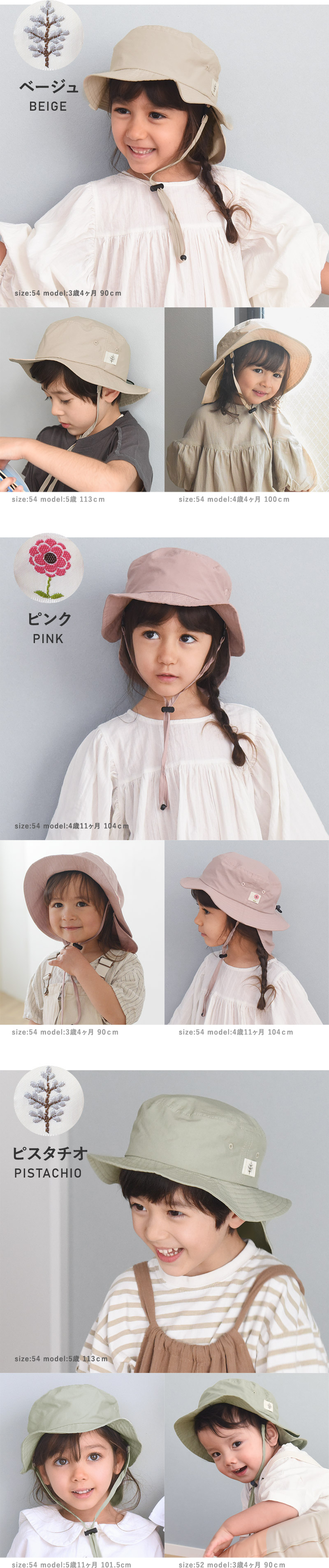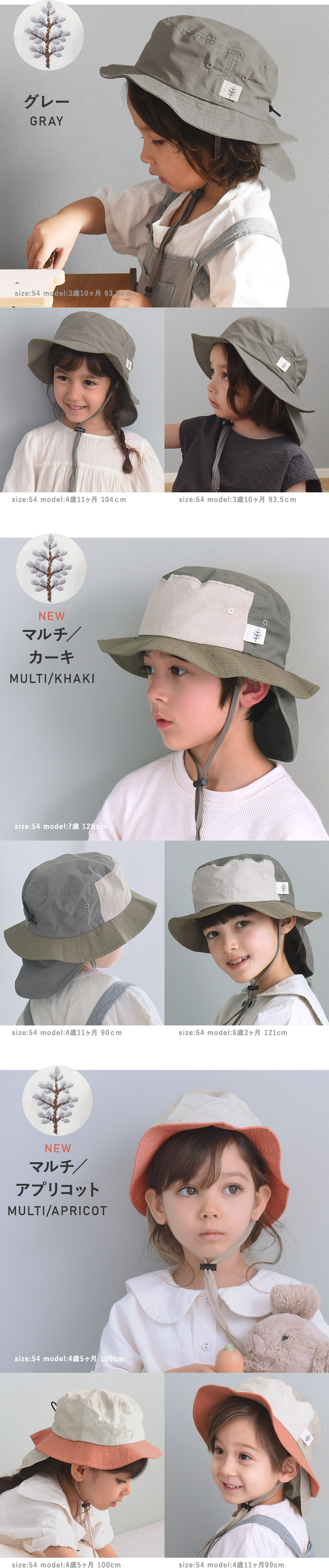キッズハットは柄物や派手目カラーのものが多い中、こちらは落ち着いたニュアンスカラー。生地の風合いはマットな質感で、アウトドアライクになりすぎないのもポイントです。