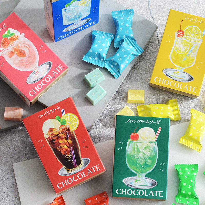 こどもの頃好きだったメロンクリームソーダや友だちと行った喫茶店。あの頃をふと思い出す、『はじけるキャンディチョコレート』がメリーチョコレートから届きました。