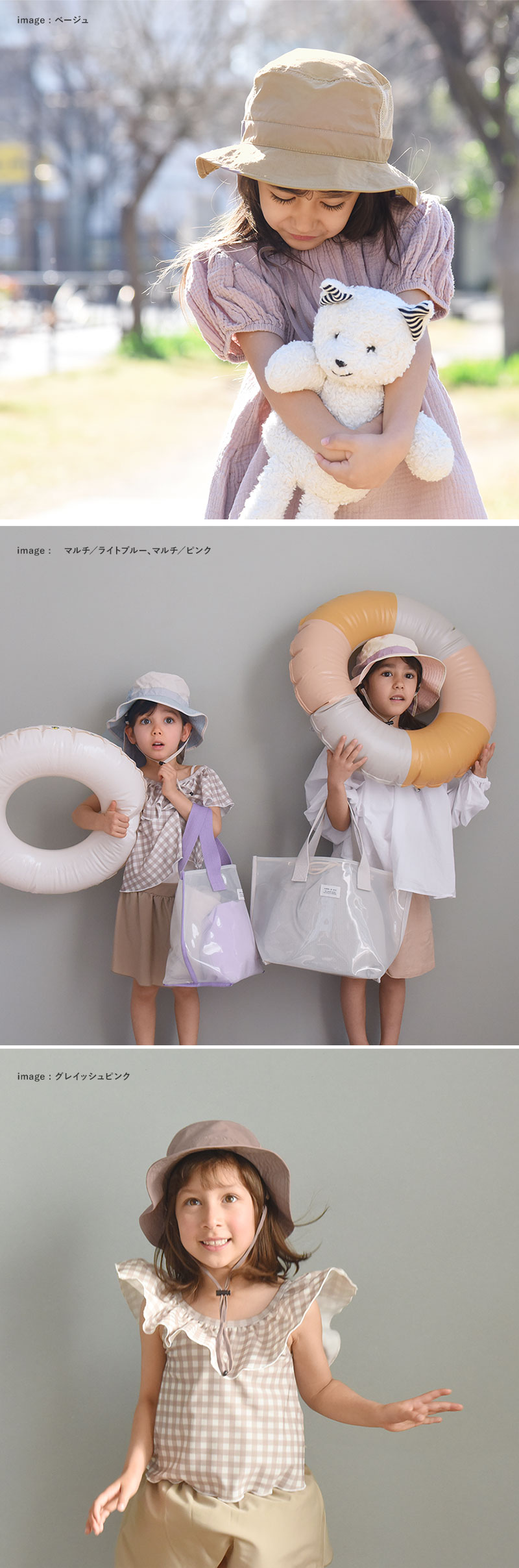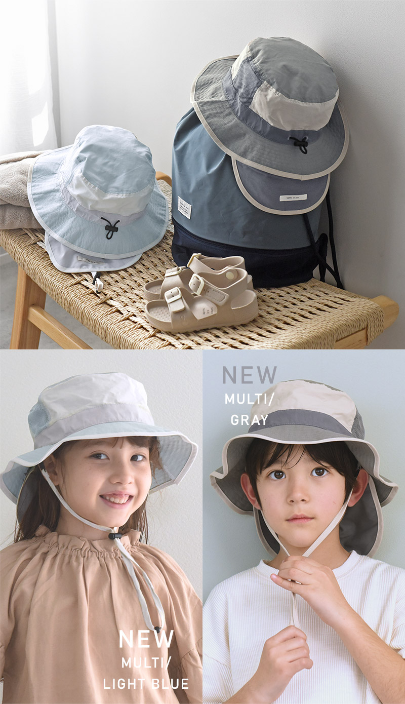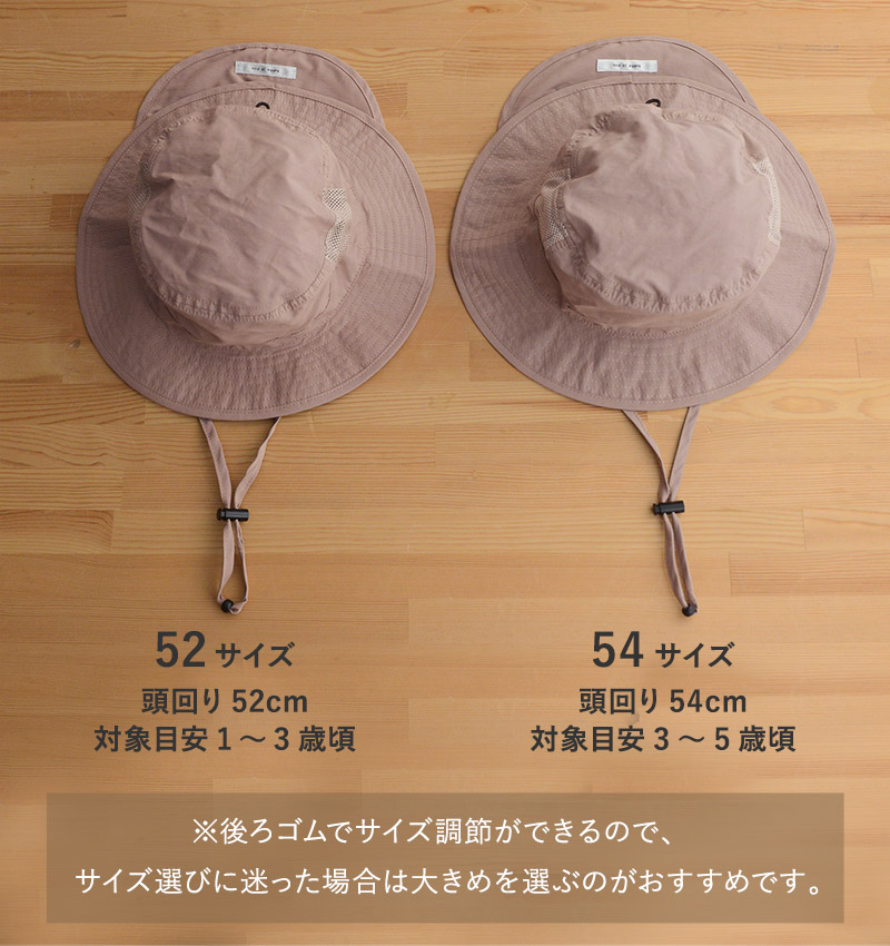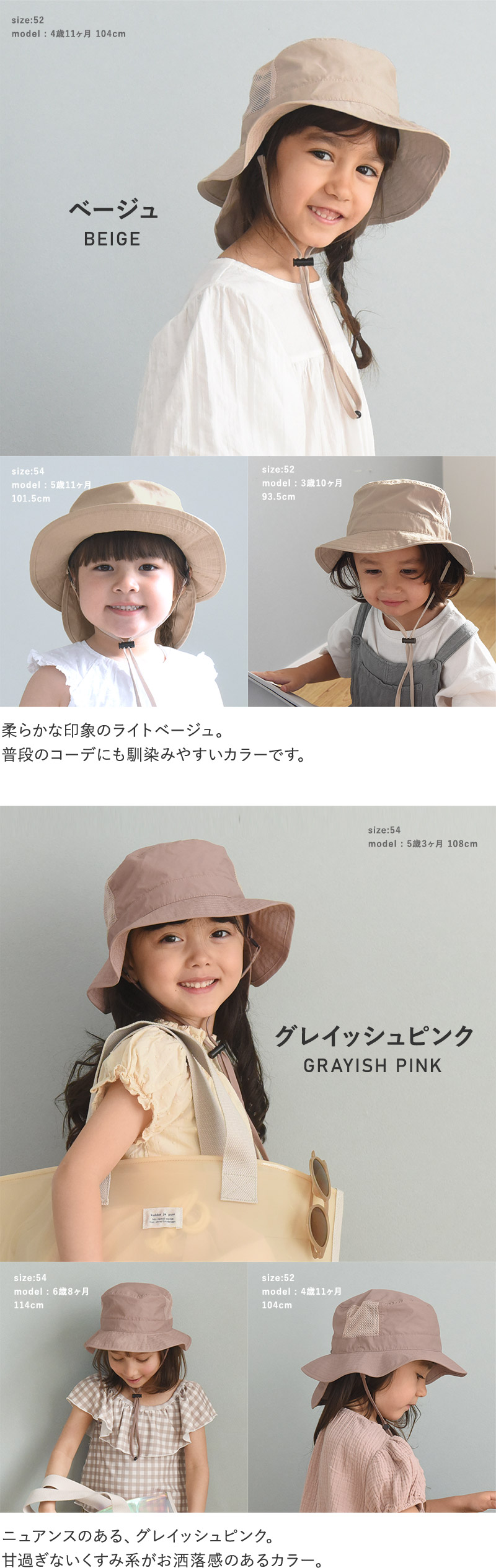 メッシュ素材で通気性アップ&乾きも早い通気性を高めるために、ハットの一部がメッシュ素材になっています。裏地を合わせない1枚仕様なので、汗をたくさんかいても頭が蒸れにくいのもポイント。また、水に濡れても乾きが早く、夏の水遊びシーンでも活躍。お庭や公園で水遊びをしたり、プールや海・川遊びなど夏のレジャーにもぴったりです。