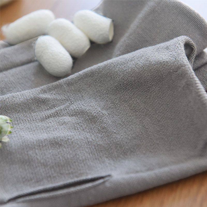 外側はサラッとした肌触りのナイロン素材。裏表で異なる素材を編むことができる、奈良県の“特別な編み立て機”を使って作られています。シルクの内側は肌触りが良く、外側は通気性に優れた仕上がりに。夏でも快適な着け心地をお届けします。