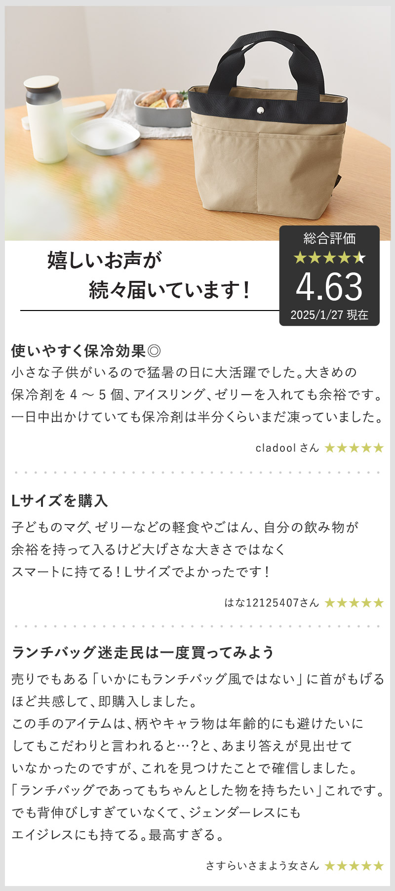 ★4.6の高評価ランチバッグ