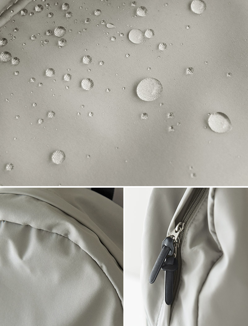 また、リュック外側の生地には撥水加工が施されており、多少の雨なら傘から伝い落ちる雨粒もはじいてくれます。
