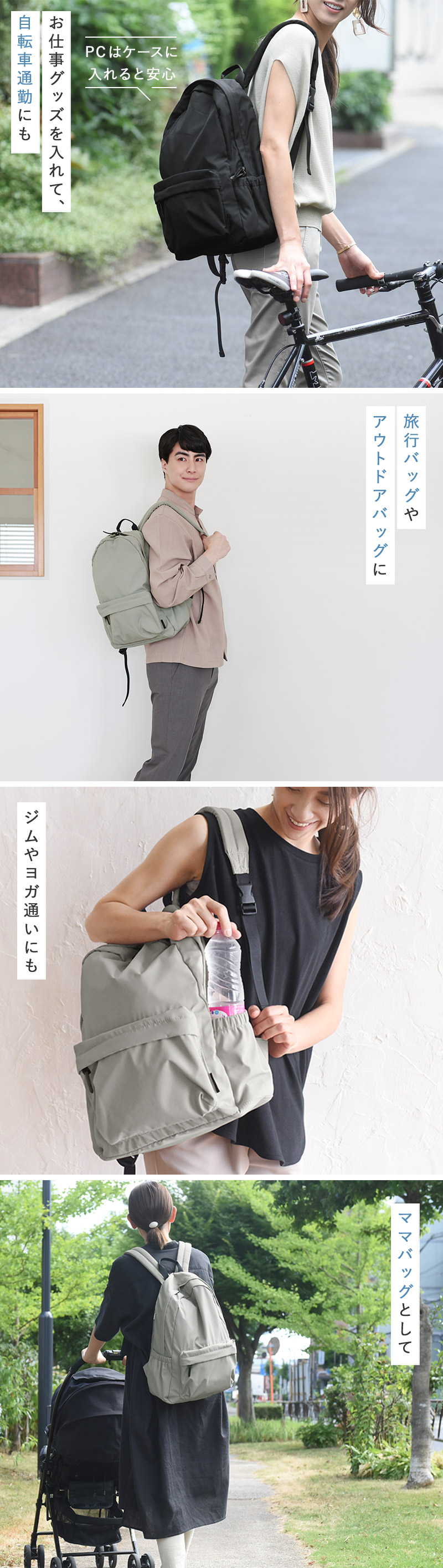 「ママカルリュック」の名前の由来は、ママの負担を軽減したいという、現役ママの開発者の思い。使い勝手を追求したリュックは、マザーズバッグとしてはもちろん、普段使いから旅行など、幅広いシーンで活躍します。