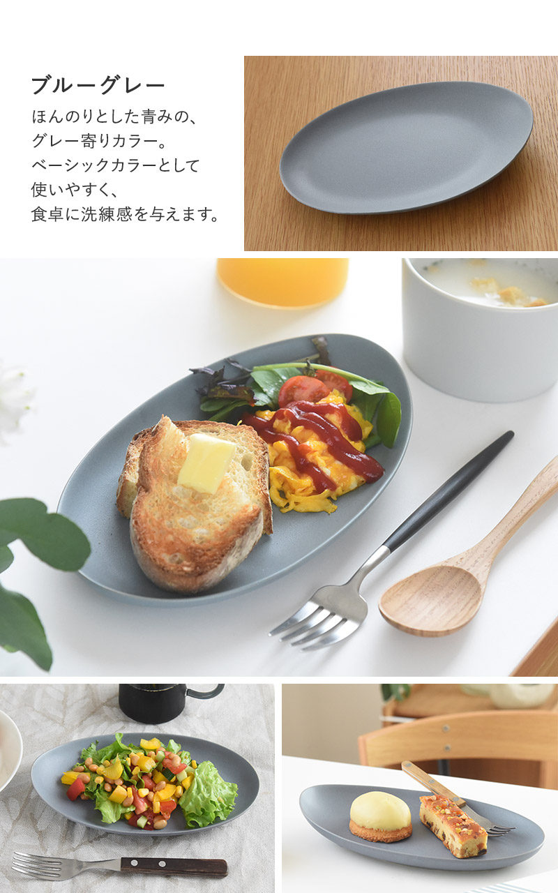 - 毎日使いにちょうどいい、美濃焼のオーバルプレート。程よい深さがあるので、汁気のあるおかずの取り皿にも。電子レンジ・食器洗い乾燥機にも対応しています。