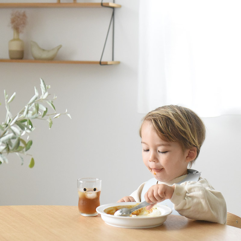 「すくいやすいうつわ」は、子どもがスプーンやフォークで食べやすい形状。「自分でできた!」が小さな子どもには大切な達成感。食べる意欲が増したり、食べ方を学べたり。その成長にパパやママも自然と笑顔になりそうです。