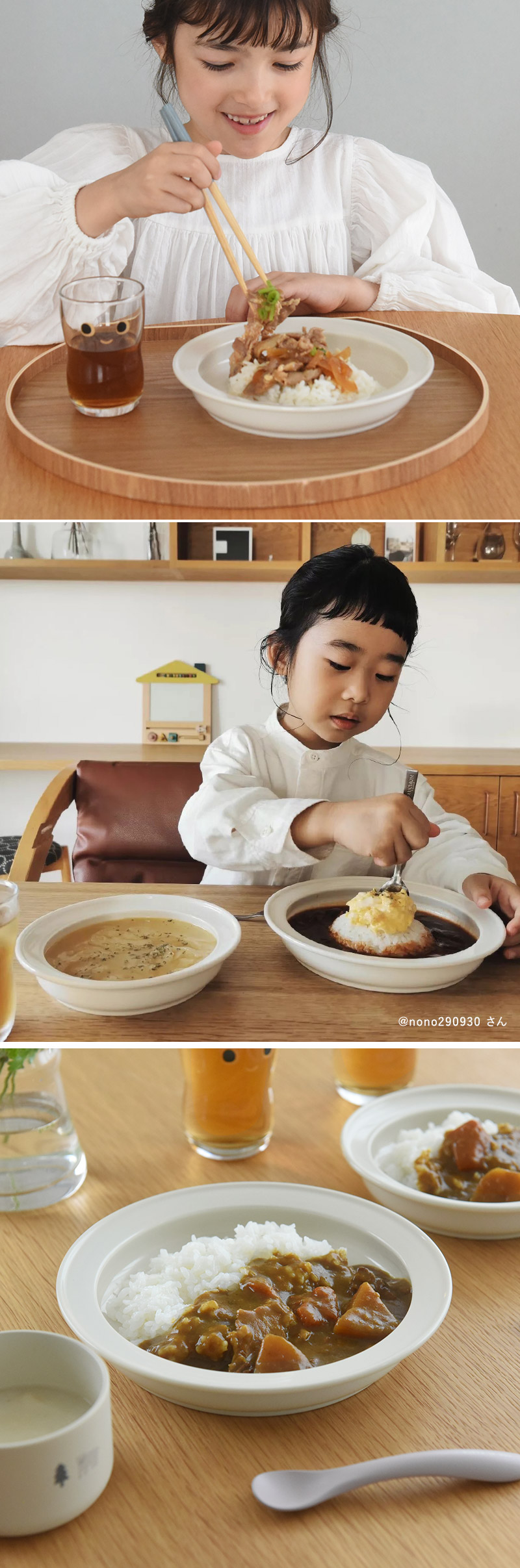 • すくいやすいお皿、ずっと探していてぴったりの商品に出会えました。汎用性も高く、普段使いとして毎日使っています。小学生の上の子に大きいサイズ、年少の下の子に小さいサイズでぴったりでした。