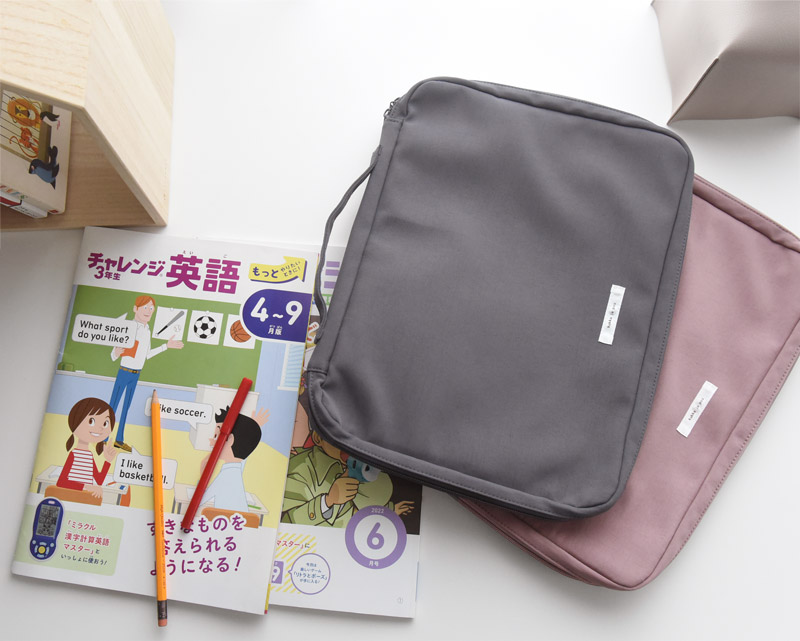 シンプルなデザインなので、成長しても中身を変えれば長く使えます。幼児向けドリルから、小学生用の学習道具も収納可能。