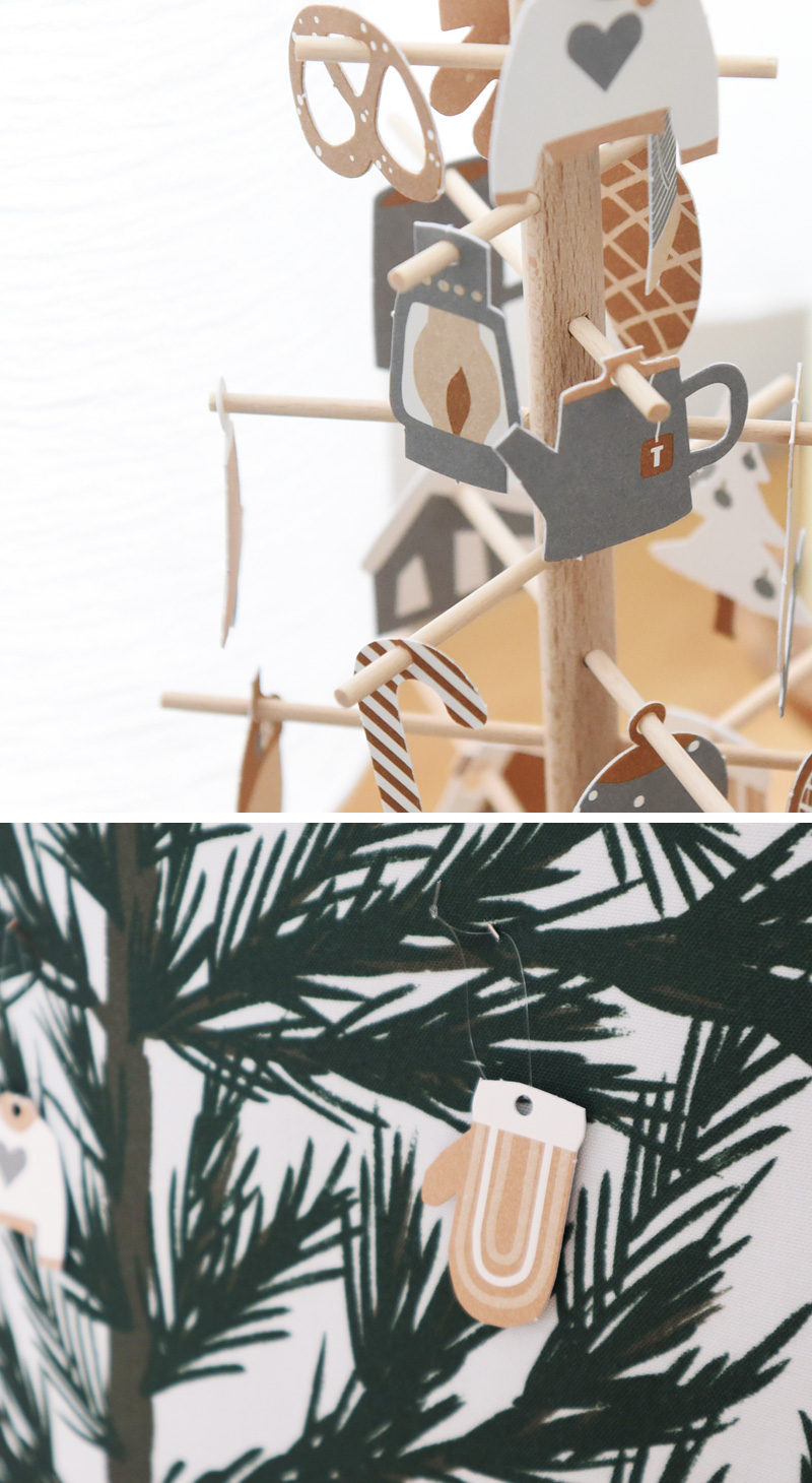 12月1日からクリスマスまでの毎日を楽しむ、北欧の空気感を纏ったアドベントツリーです。