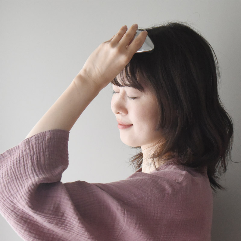 手に馴染み頭皮や顔、首などに当てやすいフォルムと、鏡面に磨き上げられたアルミニウムの光沢は、日本製ならではの美しさ。リビングやベッドルーム、サニタリーの風景を邪魔することなく、いつでも使いやすい場所に見せ置きしておけます。