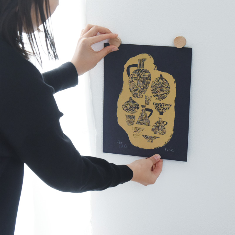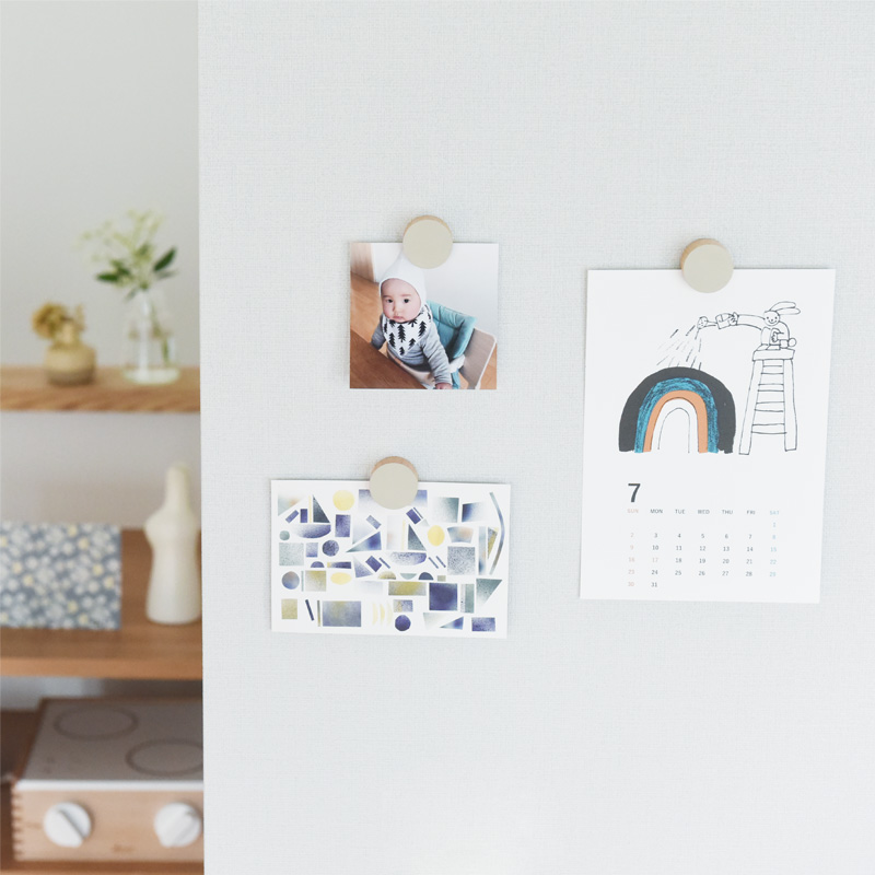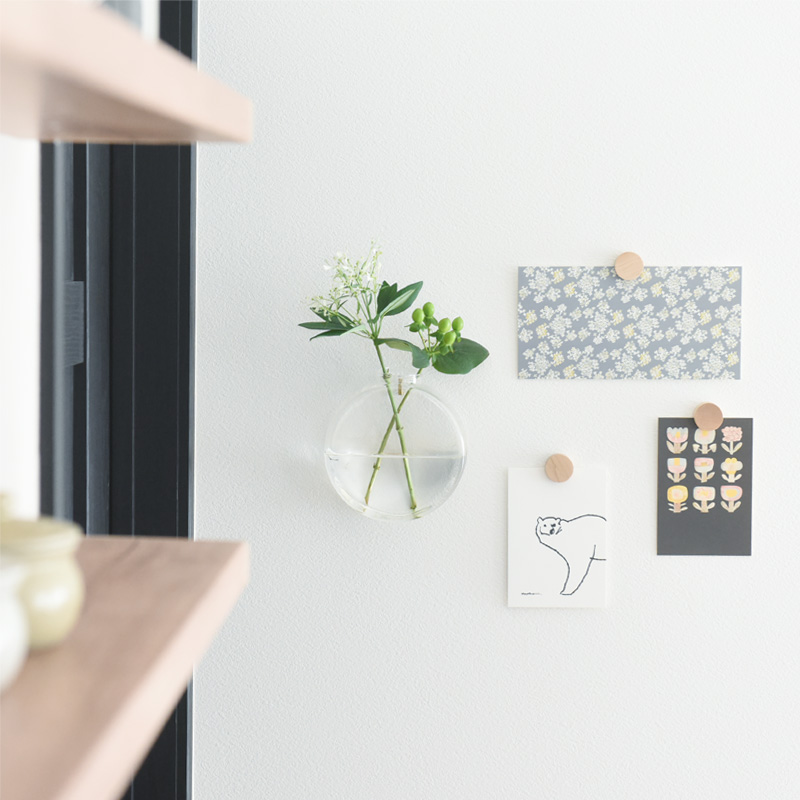 飾ったものを外す時も片手で簡単。壁に穴を開けないだけでなく、大切な写真やポストカードにも穴を開けず、手軽に飾ることができます。
