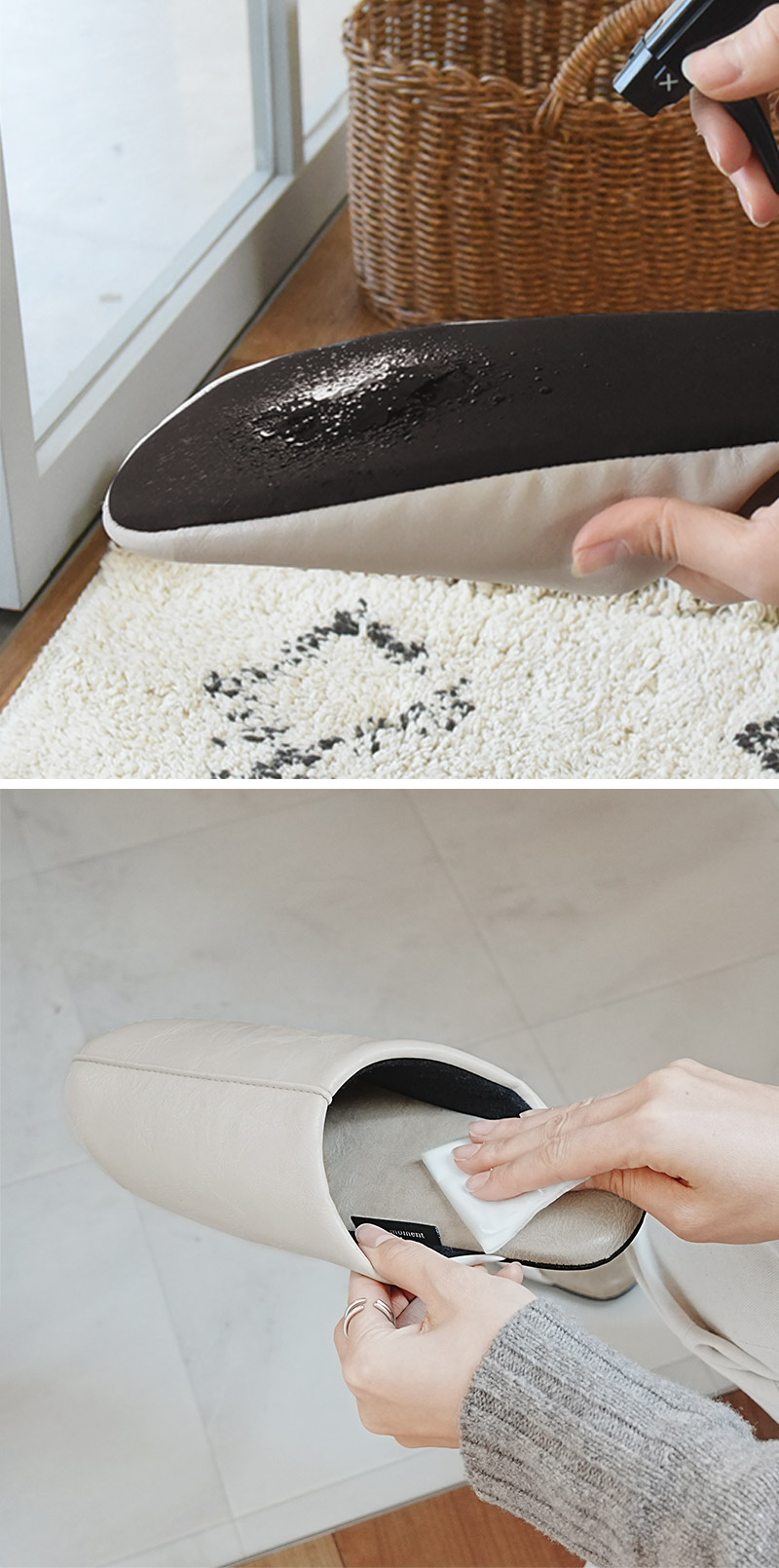 高級感のあるレザーやフェイクレザーは、一般的にアルコール除菌には非対応。そうとは知らず、フェイクレザースリッパに除菌アルコールスプレーを吹きかけたら、うっかり質感を損ねてしまった…なんて経験はありませんか?