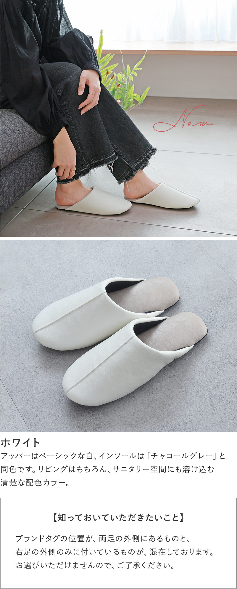 高評価いただいている「アルコール除菌ができるスリッパ」に、清潔感たっぷりホワイトカラーが登場しました。見た目にも爽やかなホワイトは、置きっぱなしにしていても気分が上がる色合い。毎日の足元をシンプルに彩ります。