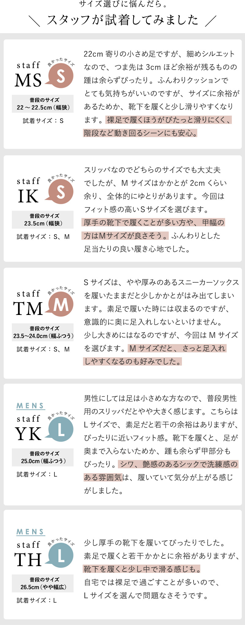 足に合わせて選べる3サイズ