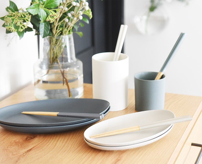こちらの四角箸は、マットな質感で、bon momentの食卓シリーズとも相性◎。合わせて使うことで、食卓にもキッチンにも統一感が生まれるカラーです。