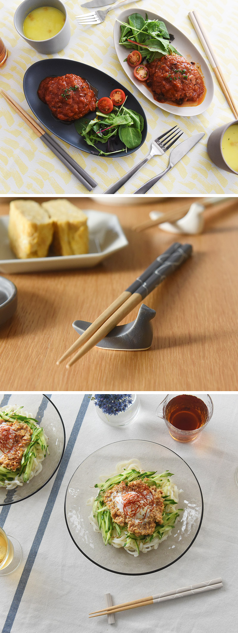 和食だけでなく洋食をお箸で食べるシーンも多い、日本の食卓。bon momentのお箸は、和洋中どんな料理にも合わせやすいように作られています。
