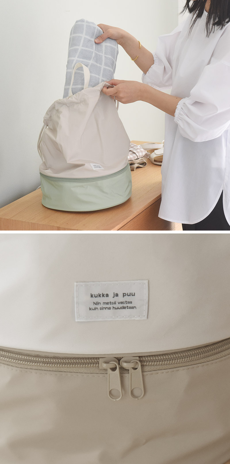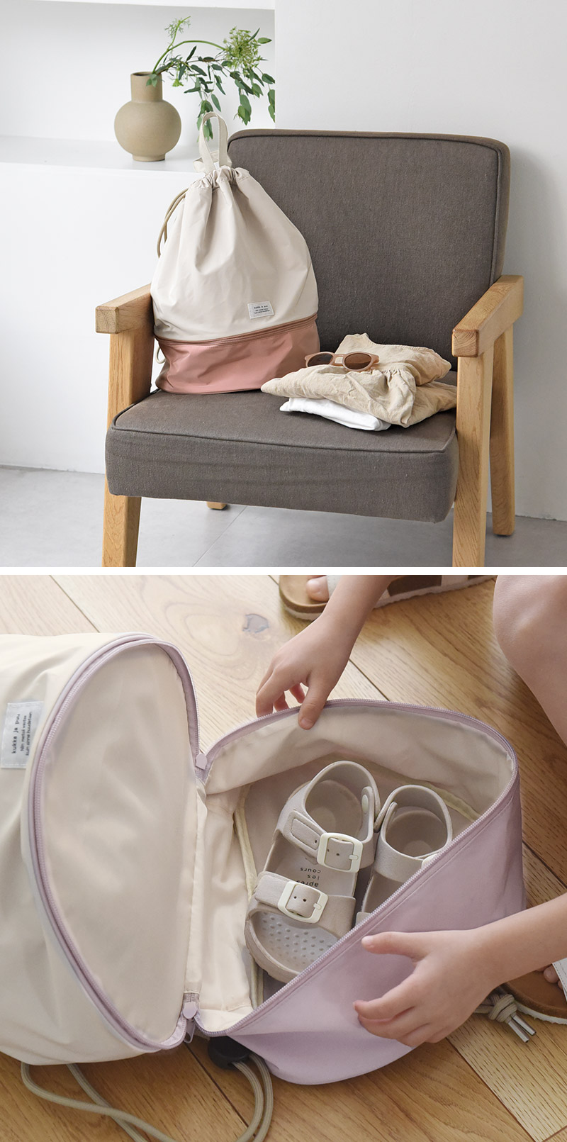 2層式のナップサックは、持ち物の整理をしやすいのがポイント。上の層には水着やタオル、下の層にはサンダルを入れて・・と、お子様でも整理しやすくなっています。